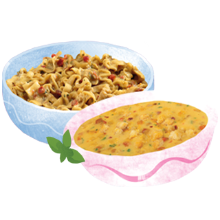 For lunch and dinner, you'll have plenty of delicious options to choose from; mouth-watering soups to some of the nation’s favourite dishes; Spaghetti Bolognese, Chicken Tikka or Macaroni Cheese, you'll be spoilt for choice. If you're feeling peckish we also have our savoury snacks, the Crunchy Fava Beans! They're high in protein and low in fat so are sure to curb those cravings!